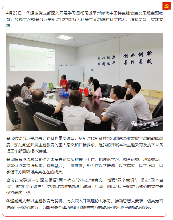 华通威党支部召开习近平新时代中国特色社会主义思想主题教育