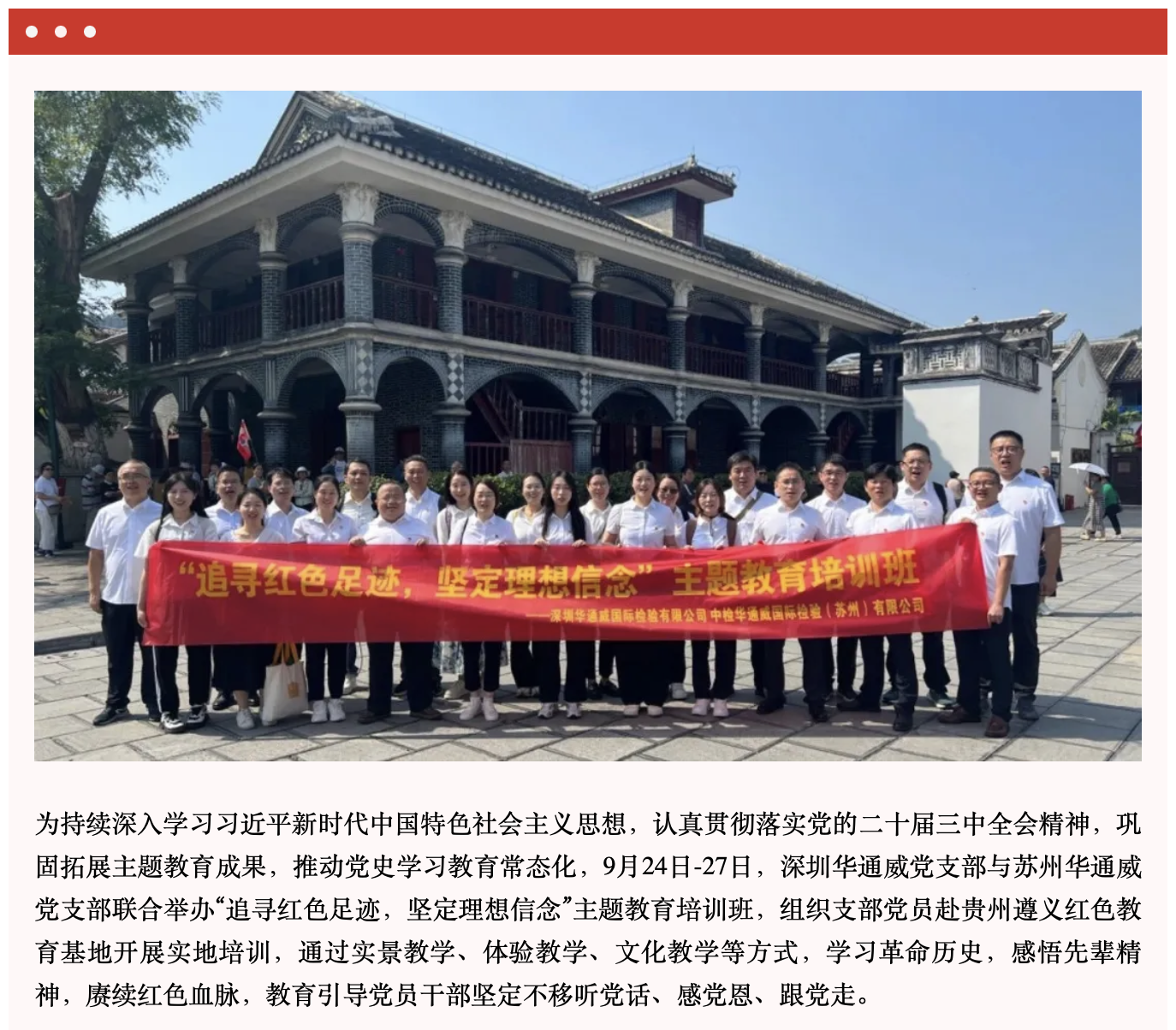 追寻红色足迹,坚定理想信念|深圳华通威党支部与苏州华通威党支部联合举办主题教育培训班