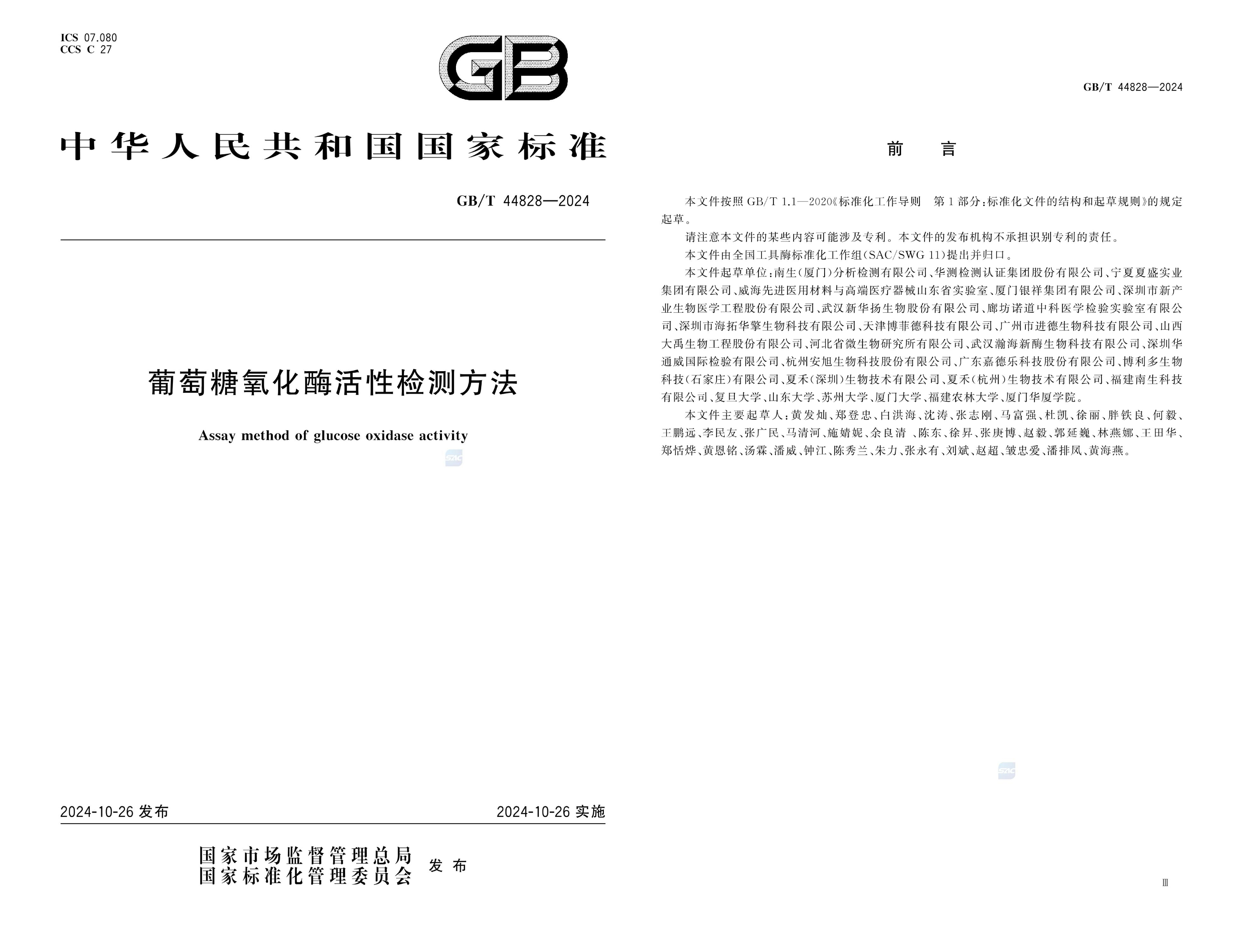 实力认证丨中检华通威主要参与的《葡萄糖氧化酶活性检测方法》国家标准正式发布