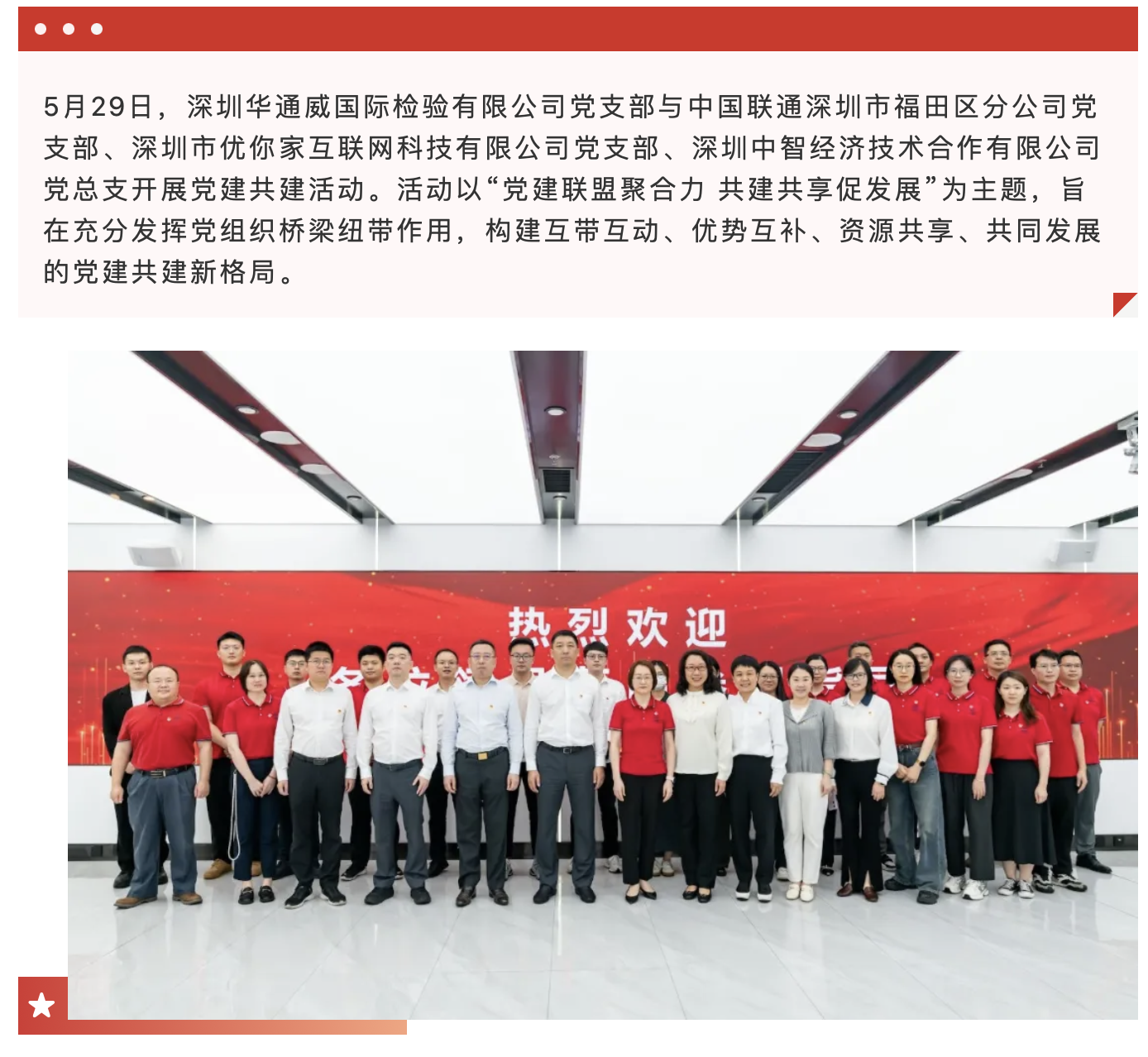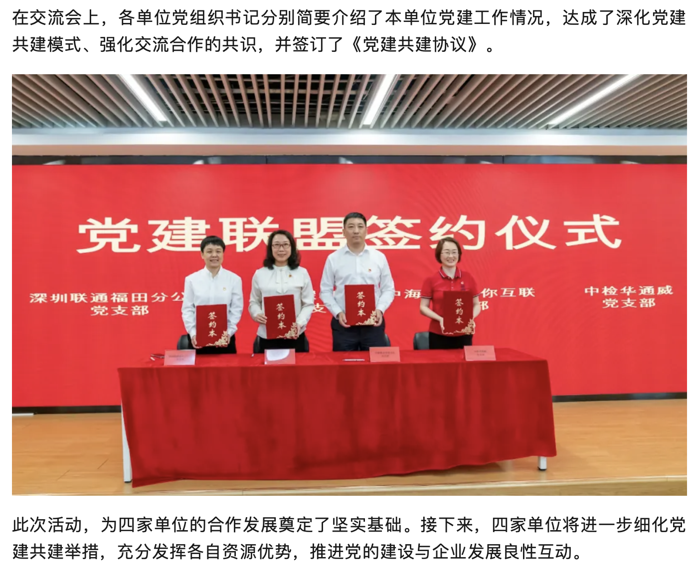 党建联盟聚合力 共建共享促发展|中检华通威与深圳联通、中海物业优你互联、中智深圳开展党建共建活动