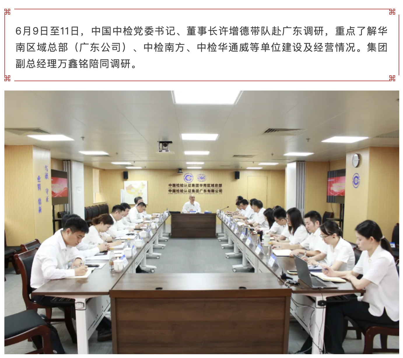 中国中检华南区域总部一行到中检华通威苏州公司调研指导