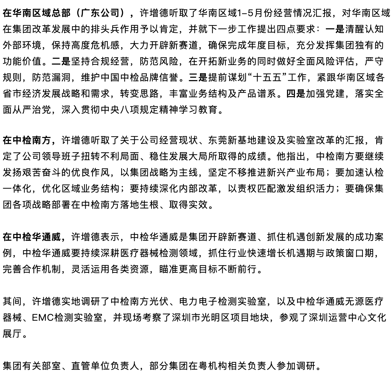 许增德赴广东调研