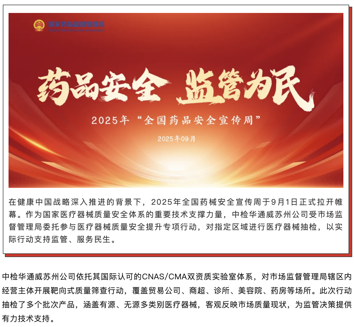 技术守护民生丨中检华通威苏州公司助力市场监督管理局抽检行动