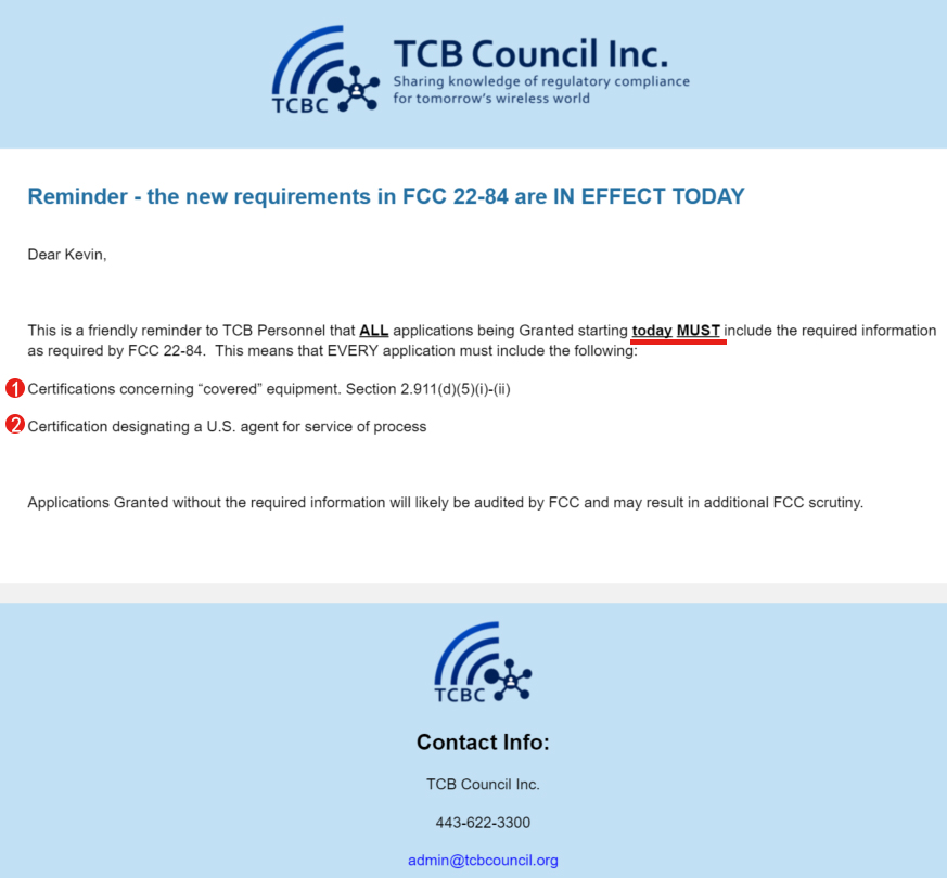 − 即日起,TCB审核的项目就要符合此法规要求