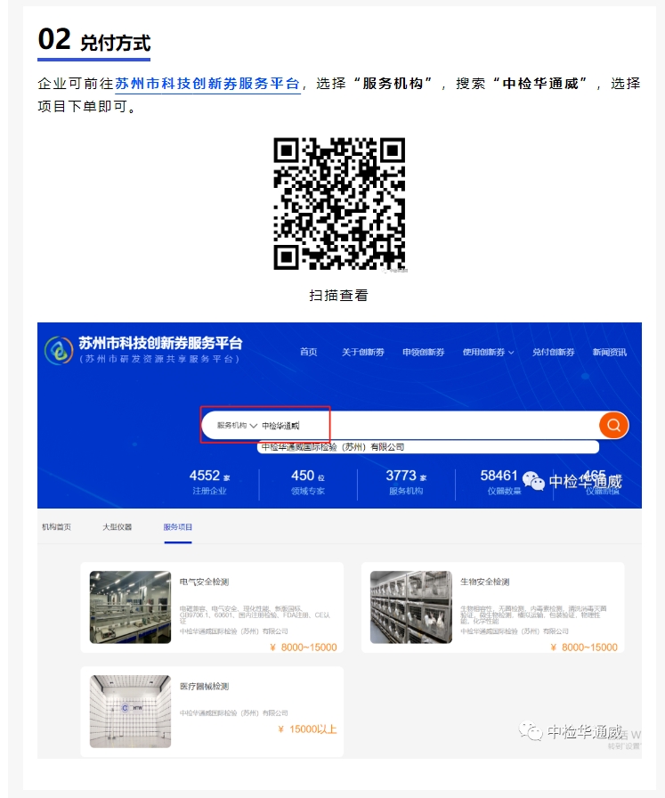 中检华通威(苏州)公司现已支持使用江苏省和苏州市两类科技创新券!