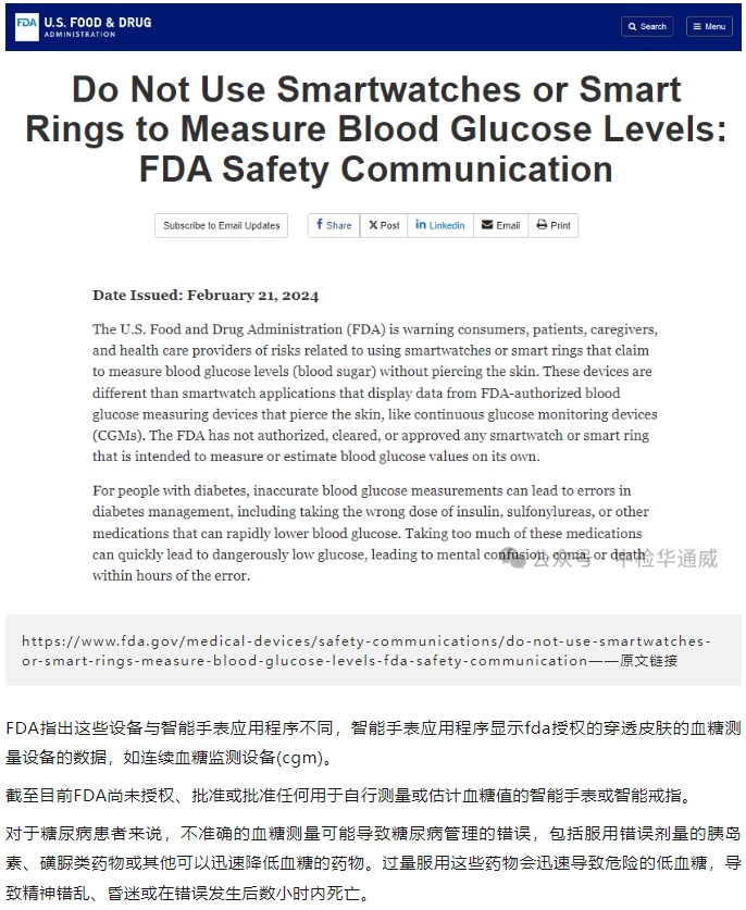 医疗资讯丨FDA警告: 不要使用智能手表或智能戒指测量血糖水平
