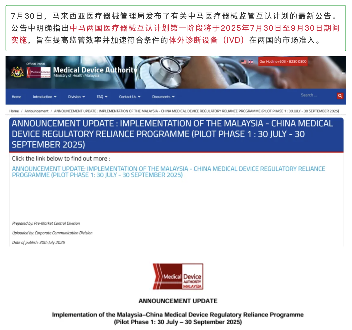 中马医疗器械互认计划第一阶段开始实施,试行60天!