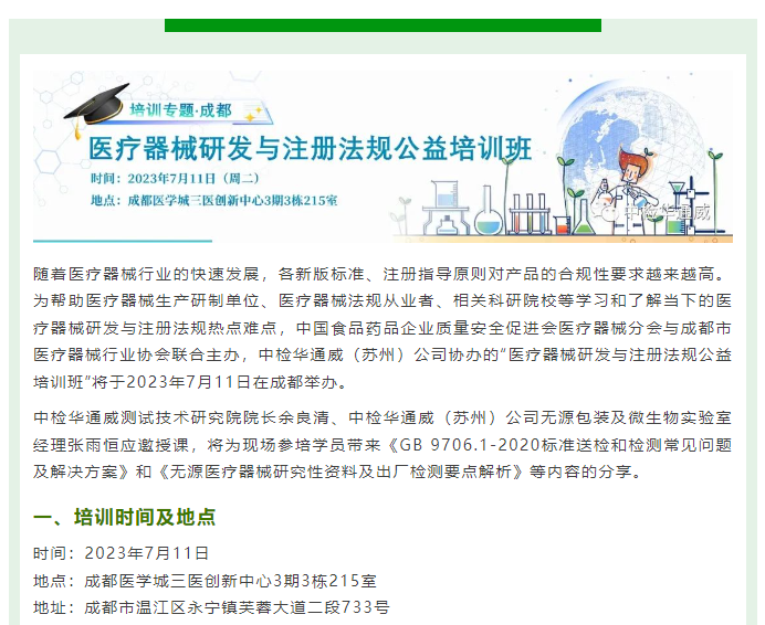 诚邀丨医疗器械研发与注册法规公益培训班(成都)