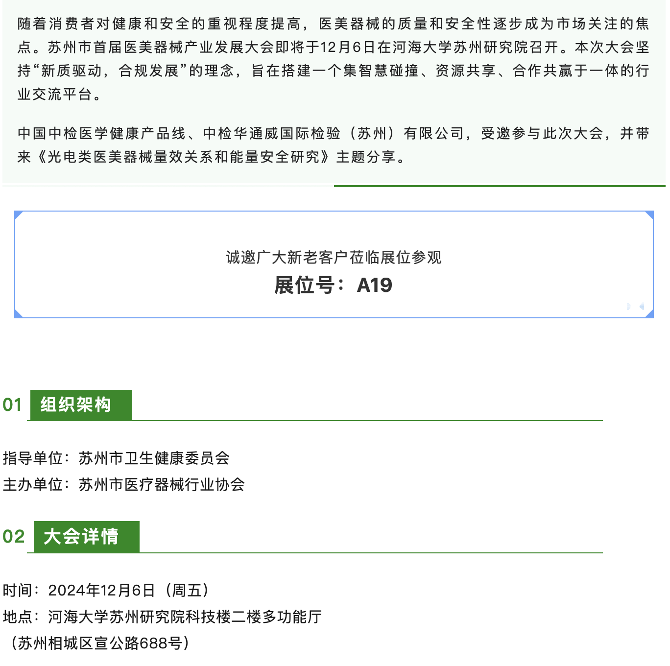 诚邀丨中检华通威与您相约苏州市首届医美器械产业发展大会