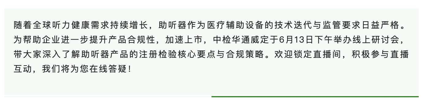 6线上直播丨助听器产品注册检验要求与合规策略研讨会