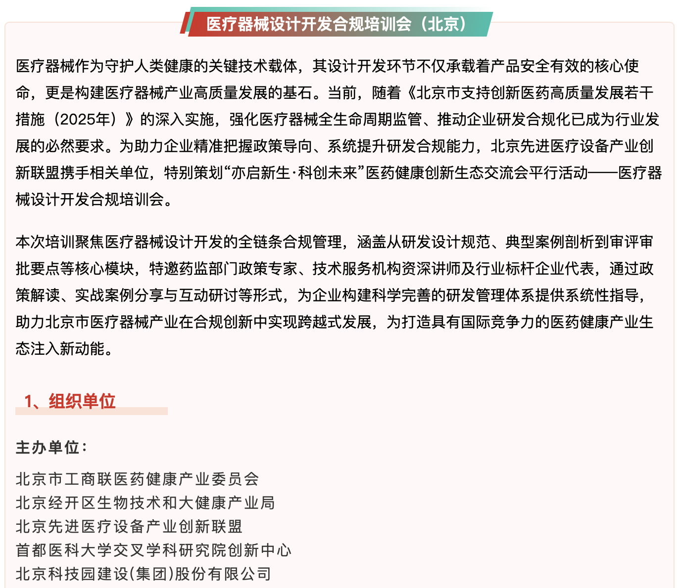 诚邀丨北京医药健康创新生态交流会平行活动——医疗器械设计开发合规培训会