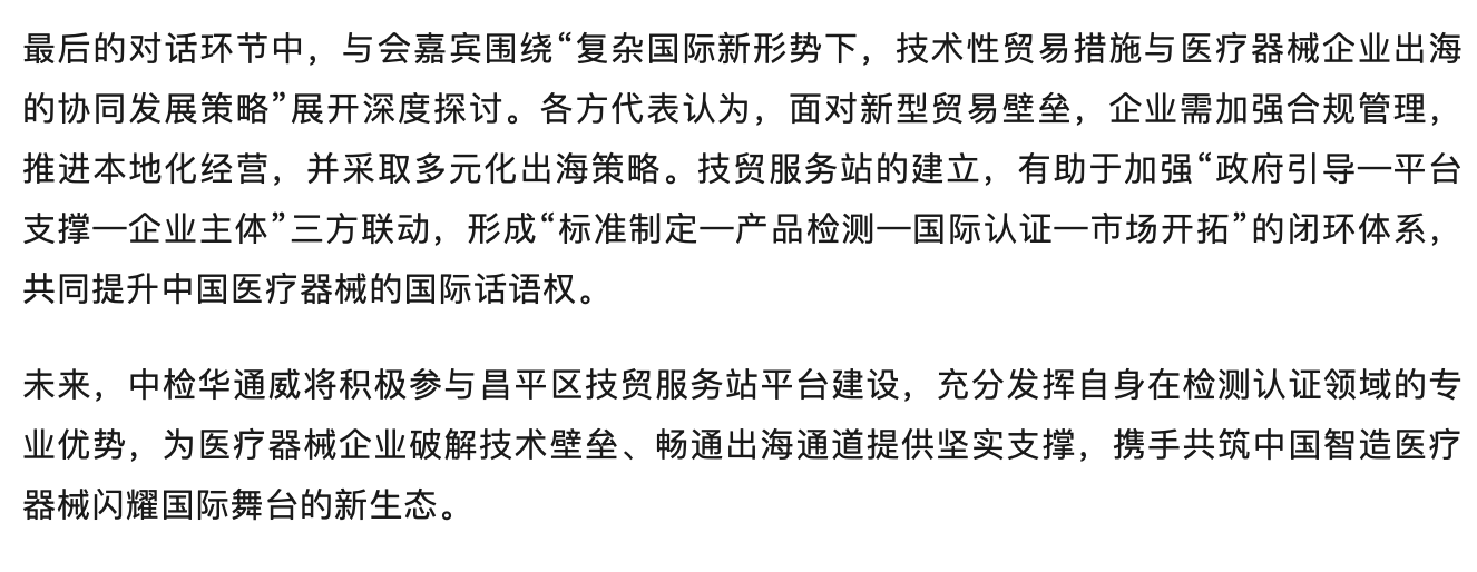 重要合作 标准认证服务助力医疗器械企业出海主题活动暨昌平区技术性贸易措施公共服务站授牌仪式成功举办