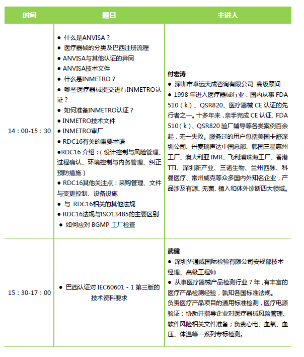 巴西卫生监督局规定有些产品在申请ANVISA注册时,必须先通过INMETRO认证;另外,有些产品(主要是三四类产品)须通过BGMP的认证。INMETRO认证要如何准备?ANVISA与CE、FDA又有什么不同?BGMP与大学熟悉的13485等标准又存在怎样的差异?为什么一些知名医疗器械企业未能通过巴西BGMP现场审核?这些问题,本次培训将会给您一一解答。