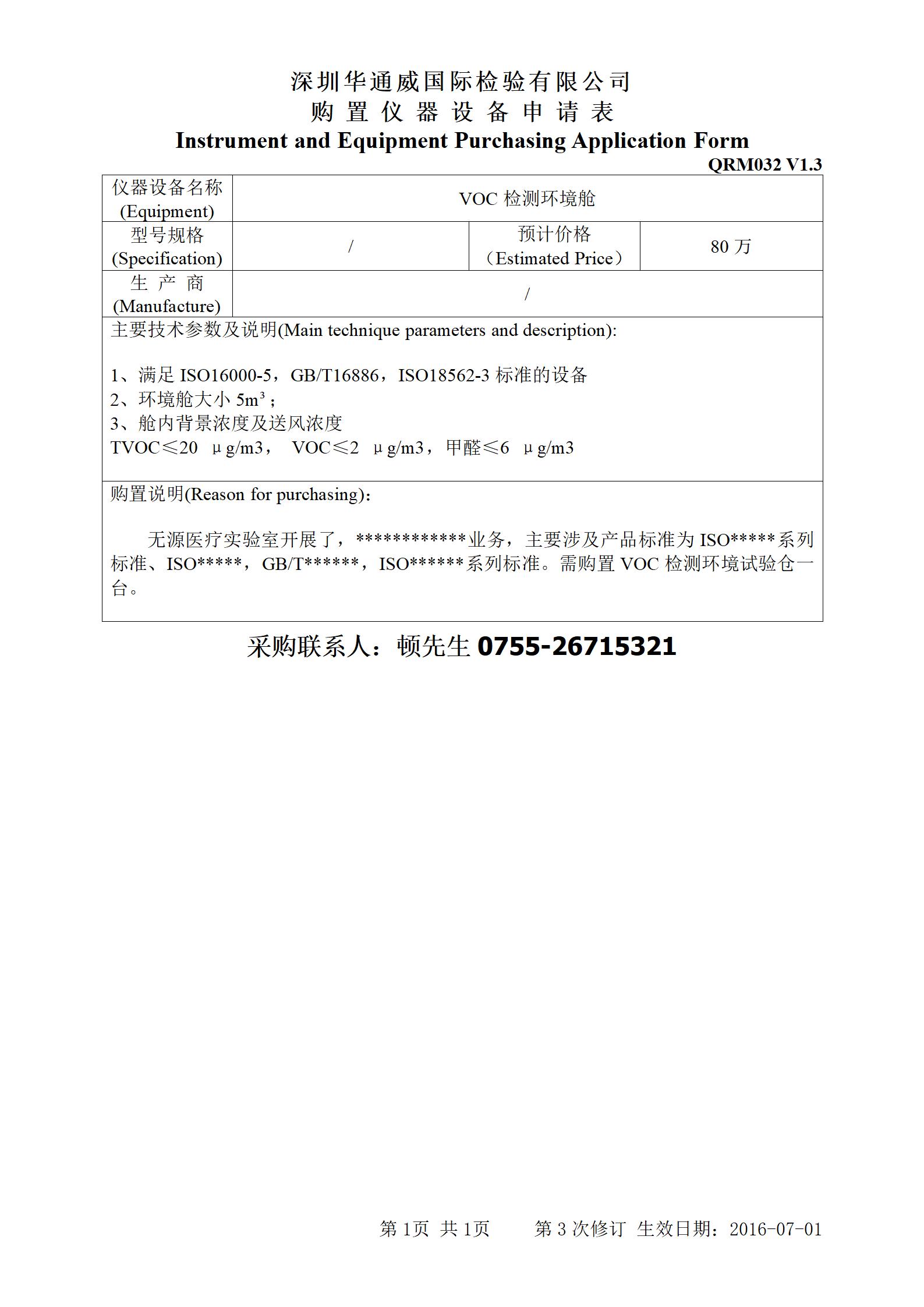 【招标采购】VOC检测环境舱